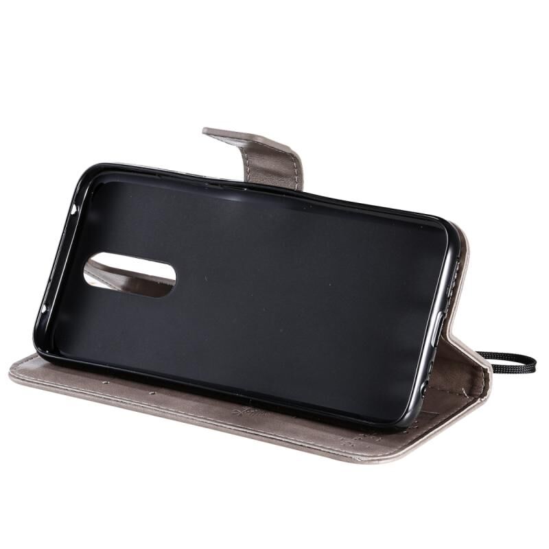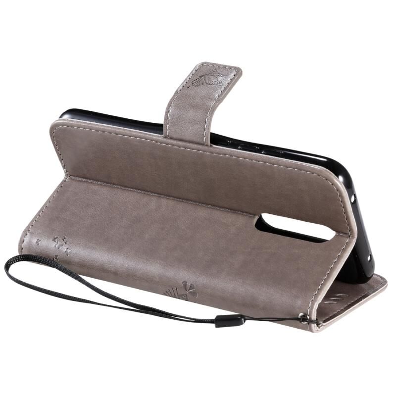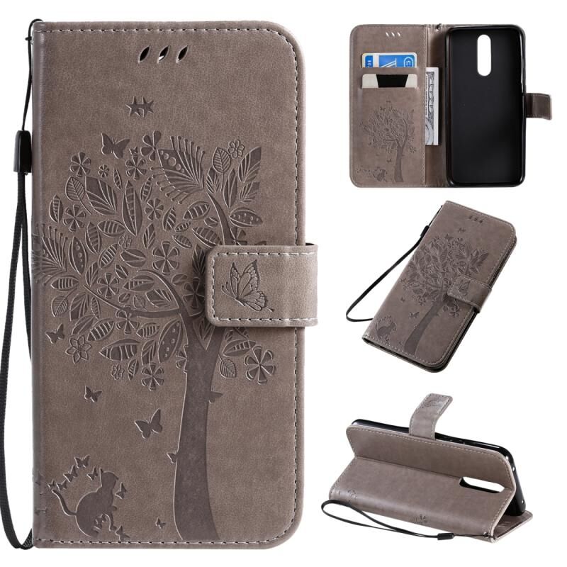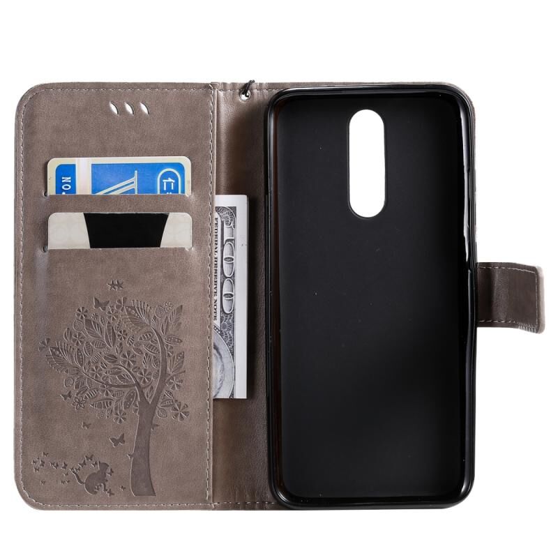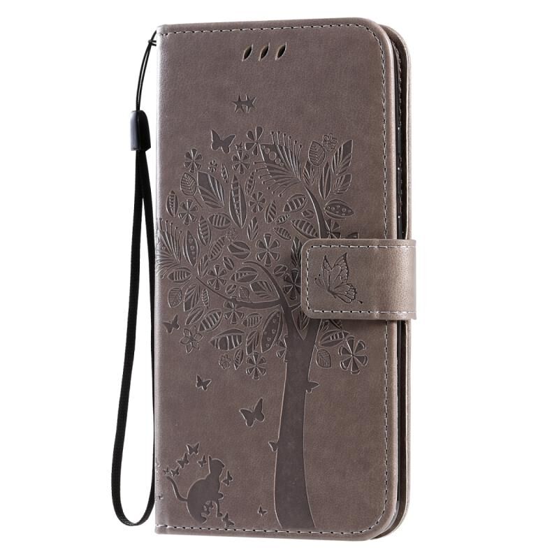 Θήκη για Xiaomi Redmi 8 με σχέδιο Δέντρου & Γάτας, εκτύπωση με πίεση, οριζόντια αναδίπλωση, από δερματίνη PU με βάση στήριξης & υποδοχές καρτών & πορτοφόλι & κορδόνι (Γκρι)