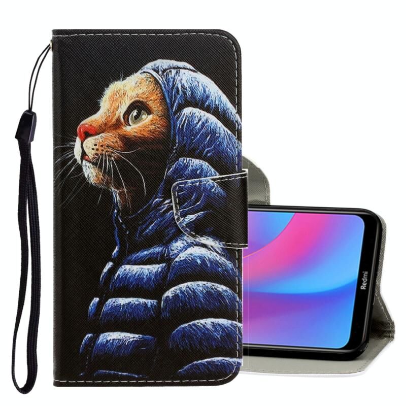 Θήκη για Xiaomi Redmi 8A 3D με έγχρωμο σχέδιο, οριζόντια αναδιπλούμενη από δερματίνη PU με βάση στήριξης & θήκες για κάρτες & πορτοφόλι (Κόκκινο)