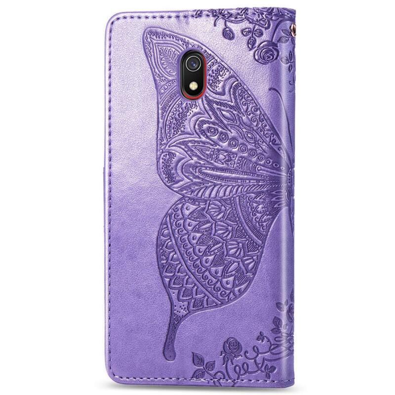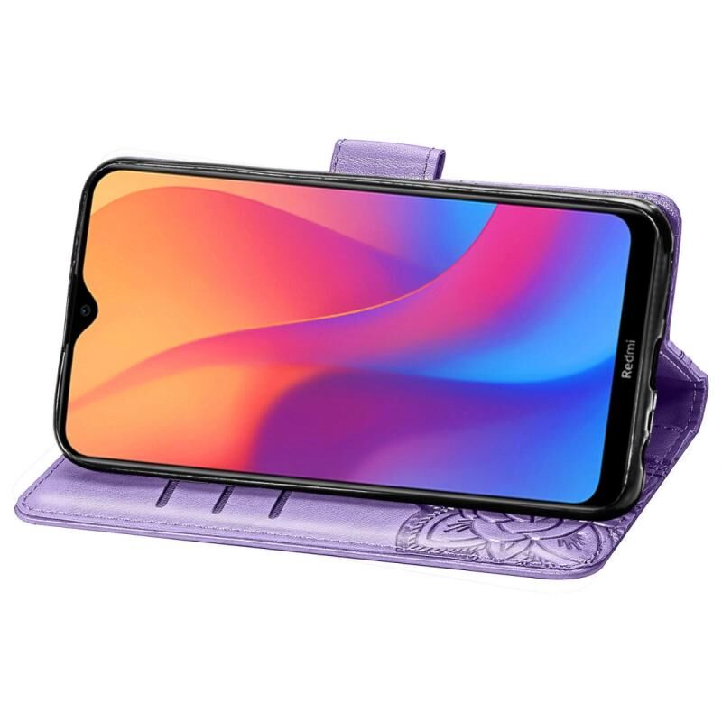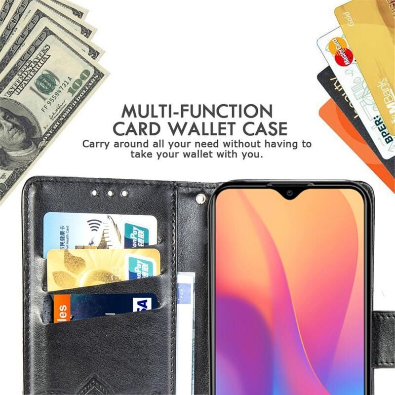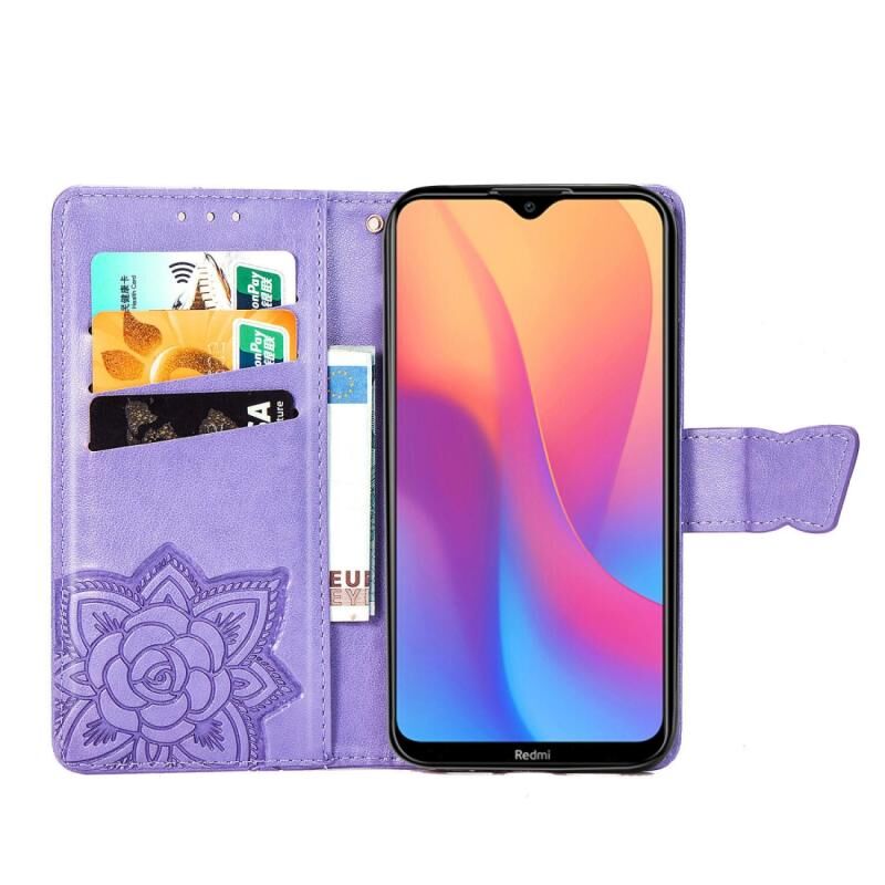 Θήκη για Xiaomi Redmi 8A, με σχέδιο πεταλούδας και λουλουδιών, ανάγλυφη, οριζόντια, από δέρμα με βάση στήριξης, κορδόνι και θήκη για κάρτες (Μαύρο)