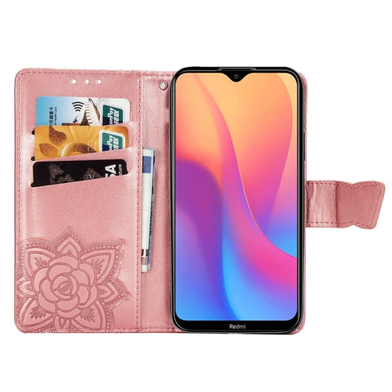 For Xiaomi Redmi 8A Butterfly Love Flower Embossed Horizontal Flip Leather Case with Bracket Lanyard Card Slot Wallet(Rose Gold)