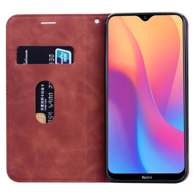 Για Xiaomi Redmi 8A Frosted Business μαγνητική οριζόντια Flip PU δέρμα υπόθεση με θήκη & υποδοχή για κάρτες & Lanyard (καφέ)