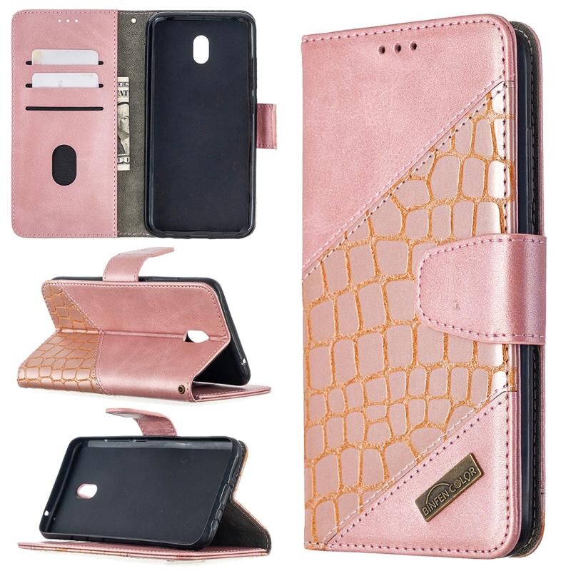 Θήκη για Xiaomi Redmi 8A, σε ταίριαστο χρώμα, με υφή κροκόδειλου, οριζόντια αναδιπλούμενη από δερματίνη PU, με πορτοφόλι, βάση στήριξης & θήκες για κάρτες (Μαύρο)