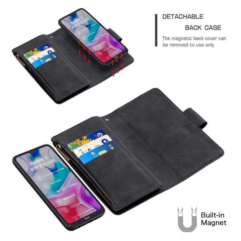 Για Xiaomi Redmi 8A Skin Feel Αποσπώμενο μαγνητικό φερμουάρ Οριζόντια Flip PU δερμάτινη θήκη με υποδοχές πολλαπλών καρτών & κάτοχος & πορτοφόλι & κορνίζα φωτογραφιών & κορδόνι (Μαύρο)