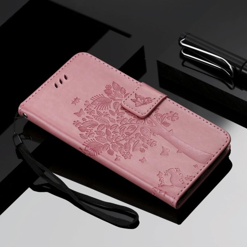 Θήκη για Xiaomi Redmi 8A με σχέδιο Δέντρου & Γάτας, εκτυπωμένη με θερμοτύπηση, οριζόντια αναδιπλούμενη από δερματίνη PU με βάση στήριξης & θήκες για κάρτες & πορτοφόλι & κορδόνι (Πράσινο)