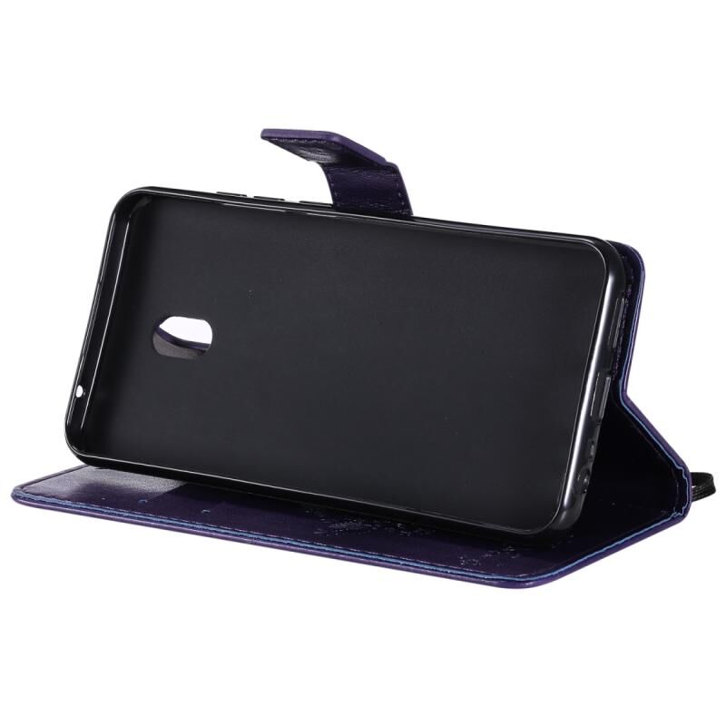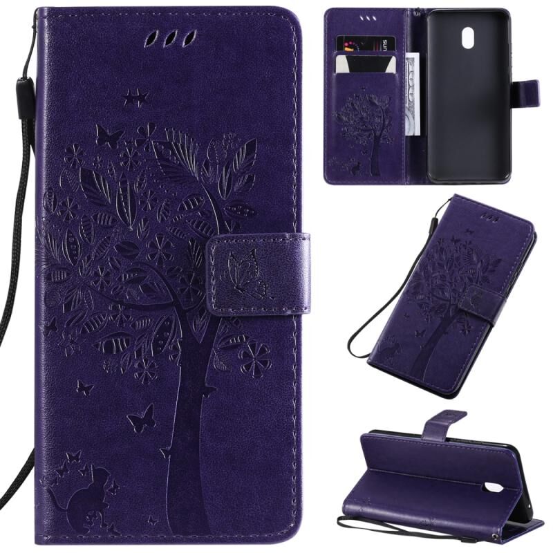 For Xiaomi Redmi 8A Tree & Cat Pattern Pressed Printing Horizontal Flip PU Leather Case with Holder & Card Slots & Wallet & Lanyard(Purple)