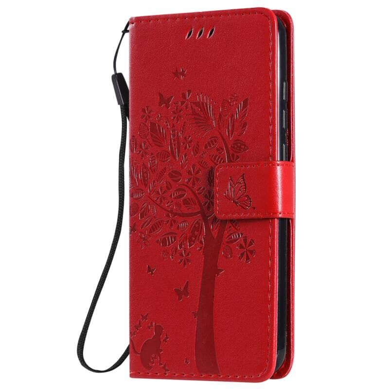 Θήκη για Xiaomi Redmi 8A με σχέδιο Δέντρου & Γάτας, εκτυπωμένη με θερμοτύπηση, οριζόντια αναδιπλούμενη από δερματίνη PU με βάση στήριξης & θήκες για κάρτες & πορτοφόλι & κορδόνι (Πράσινο)