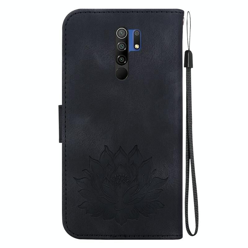 Για Xiaomi Redmi 9 / 9 Prime Lotus ανάγλυφη δερμάτινη θήκη τηλεφώνου (μαύρο)