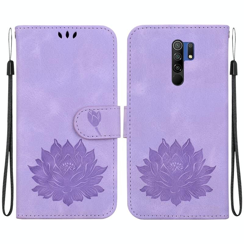 Για Xiaomi Redmi 9 / 9 Prime Lotus ανάγλυφη δερμάτινη θήκη τηλεφώνου (μωβ)