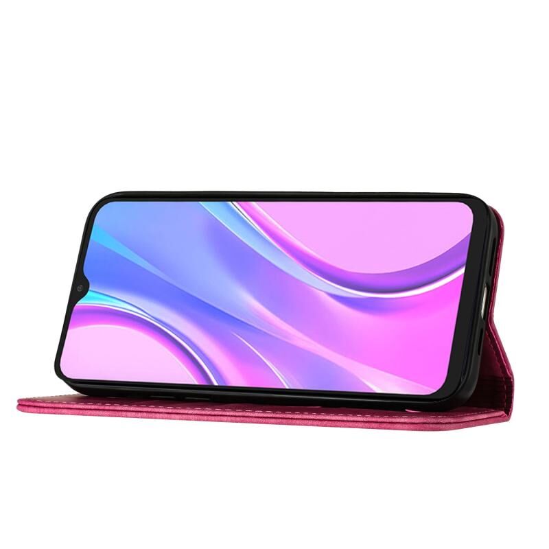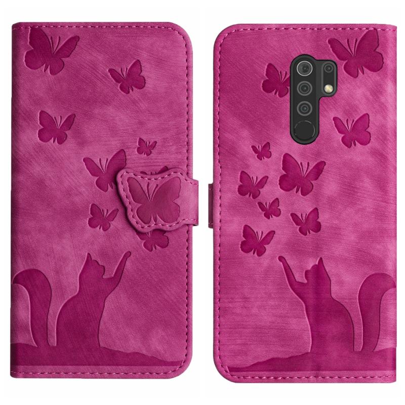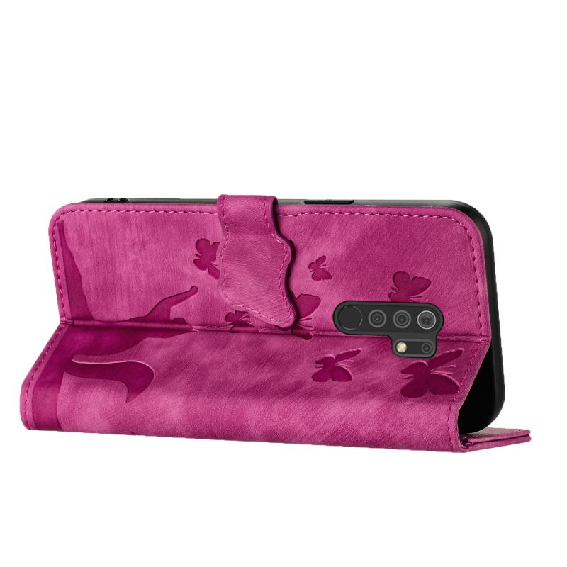 Θήκη βιβλίου δερμάτινη με ανάγλυφο σχέδιο γάτας για Xiaomi Redmi 9 (Ροζ)