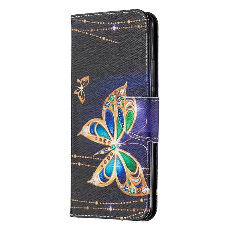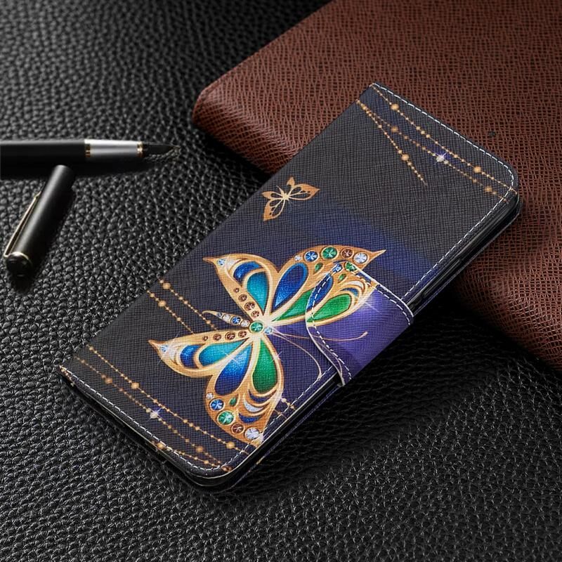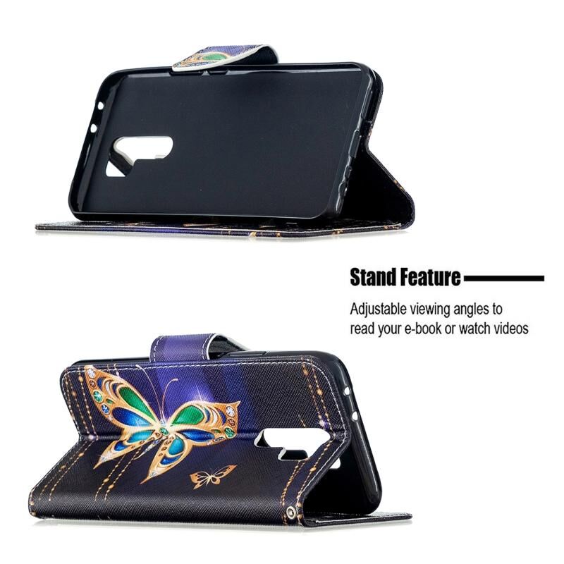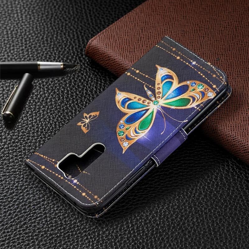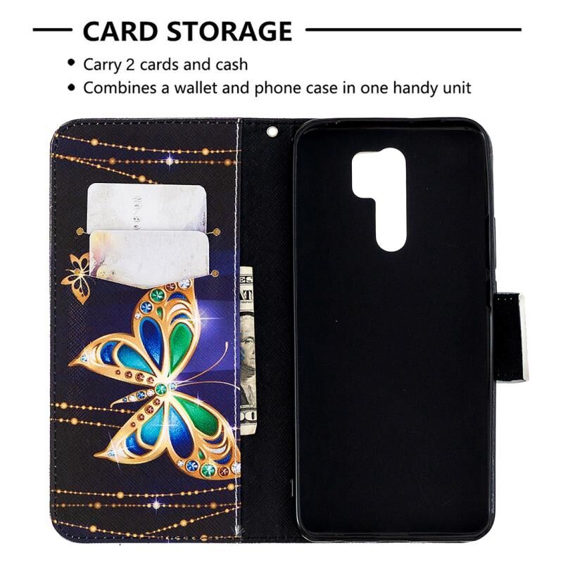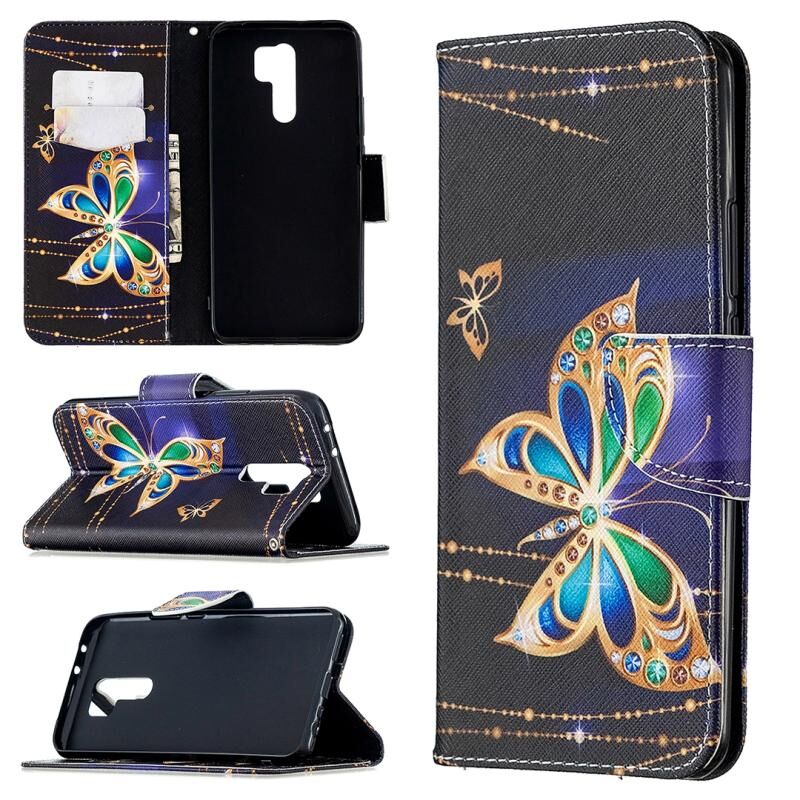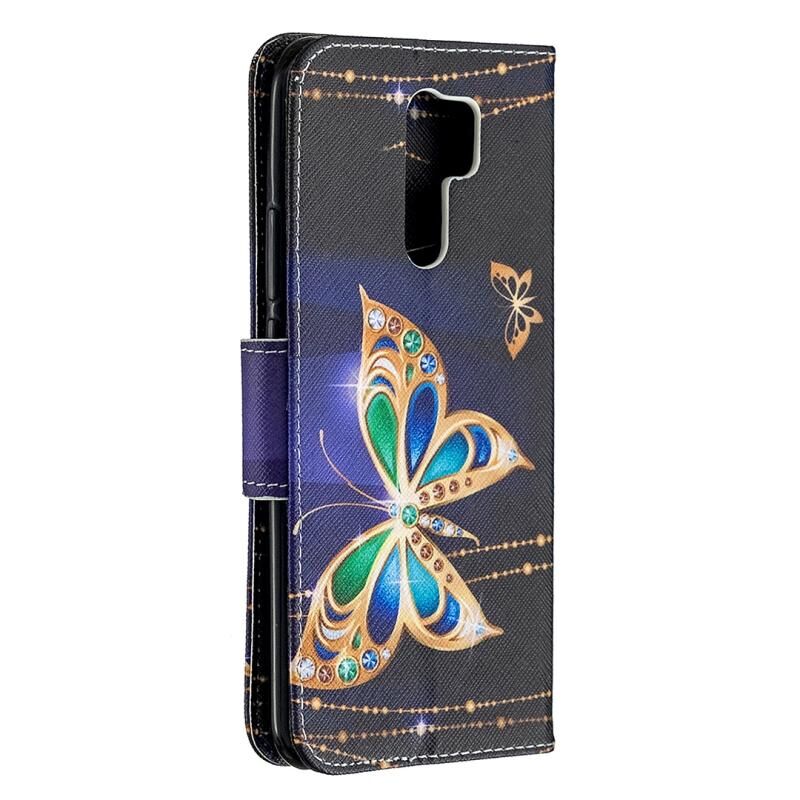 Θήκη δέρματος οριζόντιας αναδίπλωσης με σχέδιο πολύχρωμης ζωγραφικής για Xiaomi Redmi 9 με βάση & υποδοχές καρτών & πορτοφόλι (Μεγάλη Πεταλούδα)