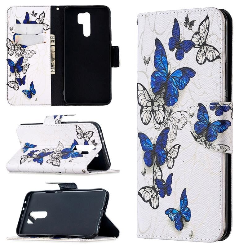 Θήκη δέρματος οριζόντιας αναδίπλωσης με σχέδια πολύχρωμης ζωγραφικής για Xiaomi Redmi 9 με βάση στήριξης & υποδοχές καρτών & πορτοφόλι (Ομάδα Πεταλούδων)