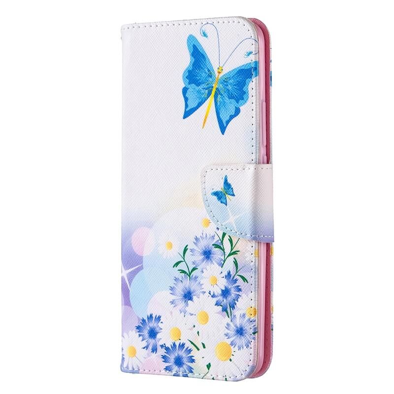 Θήκη δέρματος οριζόντιας αναδίπλωσης με σχέδια πολύχρωμης ζωγραφικής για Xiaomi Redmi 9 με βάση & υποδοχές καρτών & πορτοφόλι (Αγάπη Πεταλούδας)