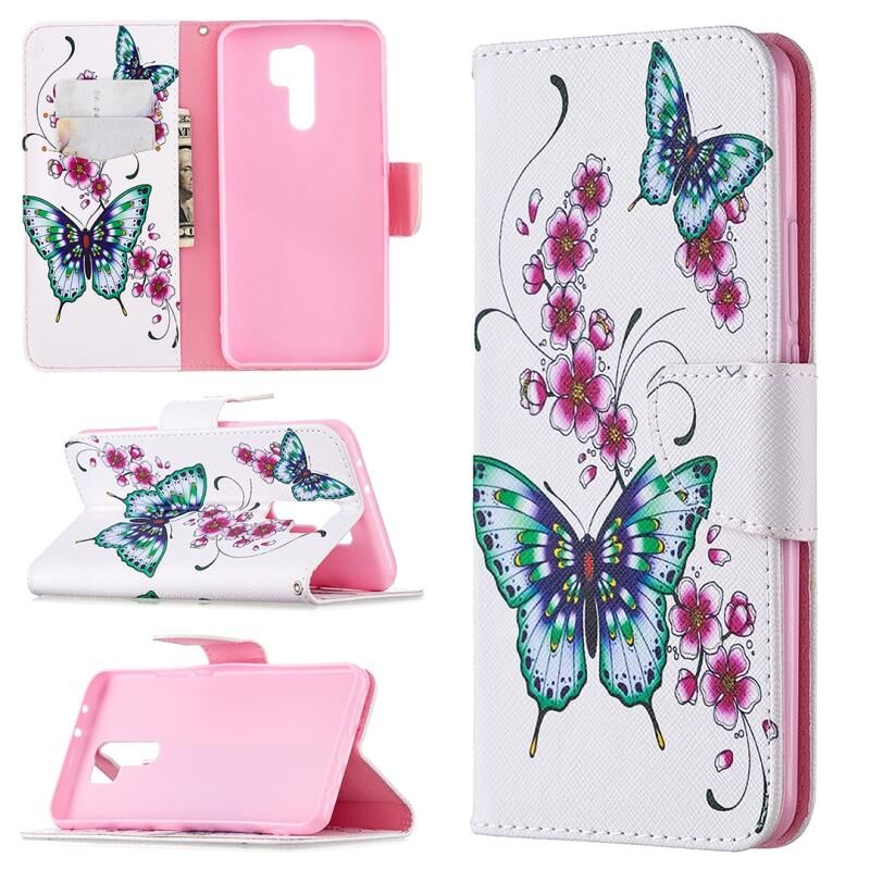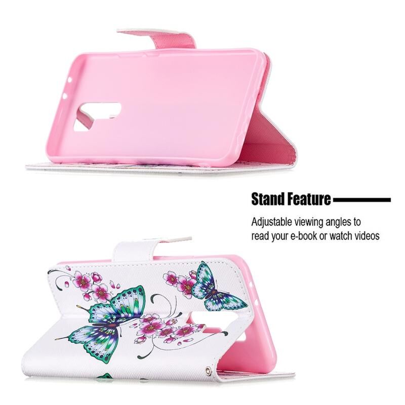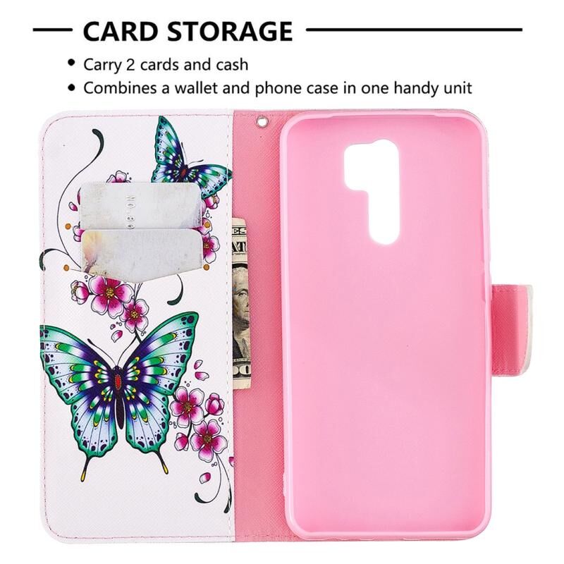 Θήκη δέρματος οριζόντιας αναδίπλωσης με σχέδια πολύχρωμης ζωγραφικής για Xiaomi Redmi 9 με βάση στήριξης & υποδοχές καρτών & πορτοφόλι (Κόκκινο)