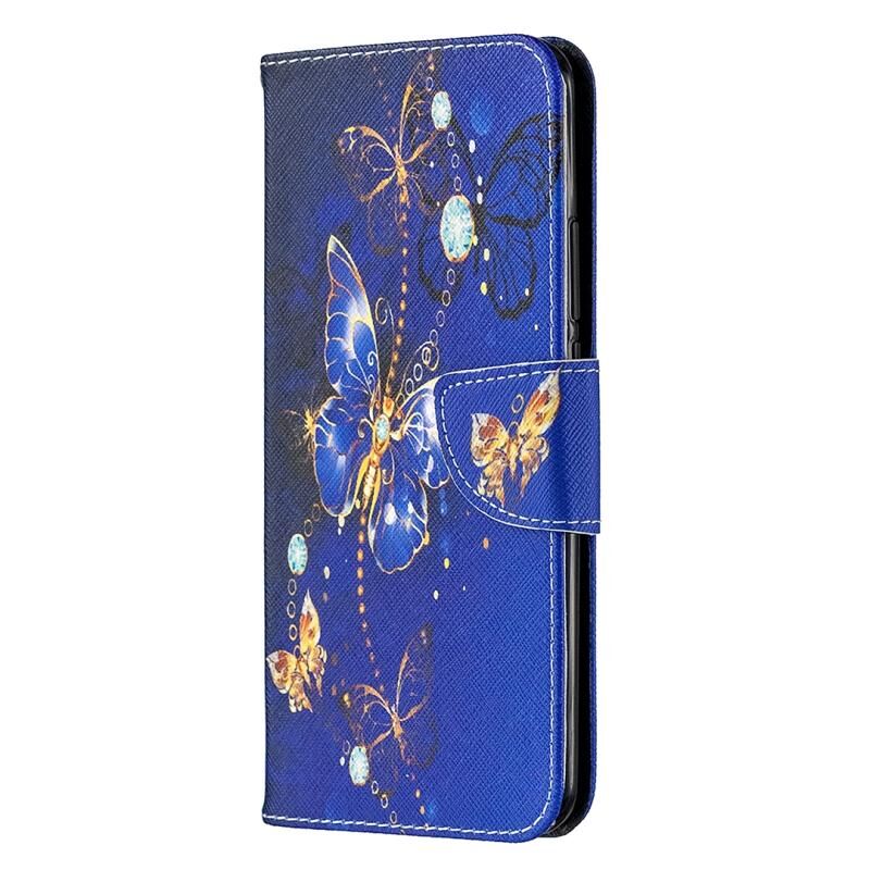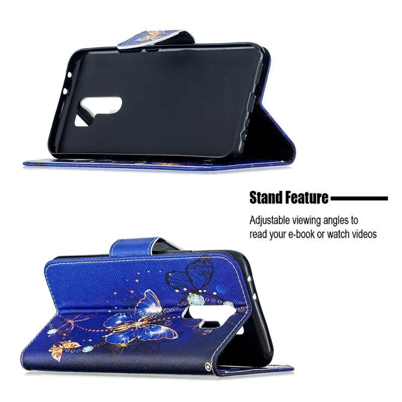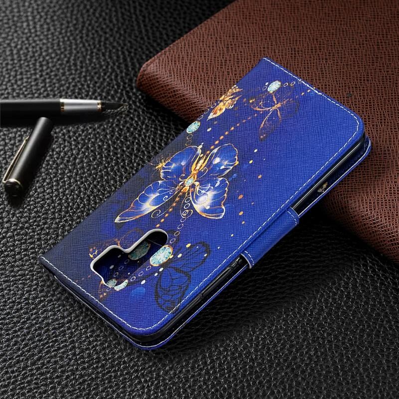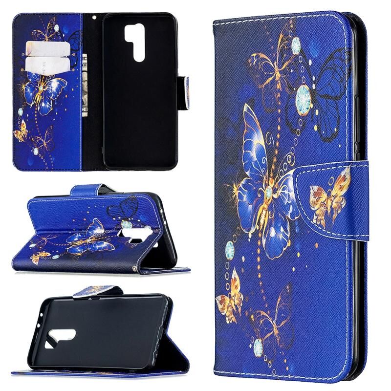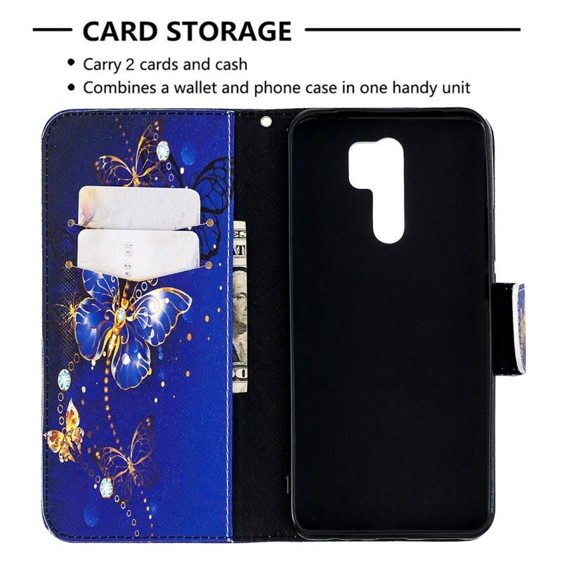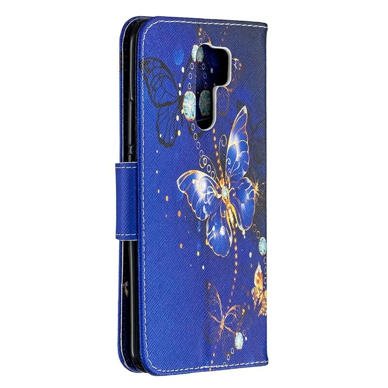 Θήκη δέρματος οριζόντιας αναδίπλωσης με σχέδιο πολύχρωμης ζωγραφικής για Xiaomi Redmi 9 με βάση & υποδοχές καρτών & πορτοφόλι (Μωβ Πεταλούδα)