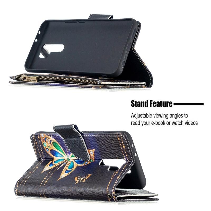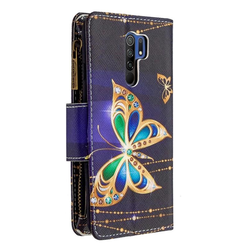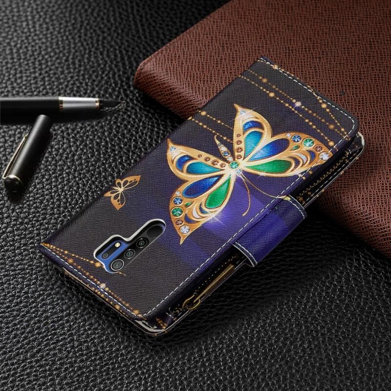Θήκη δέρματος οριζόντιας αναδίπλωσης με φερμουάρ και σχέδια ζωγραφικής για Xiaomi Redmi 9 με βάση για κάρτες και πορτοφόλι (Κόκκινο)
