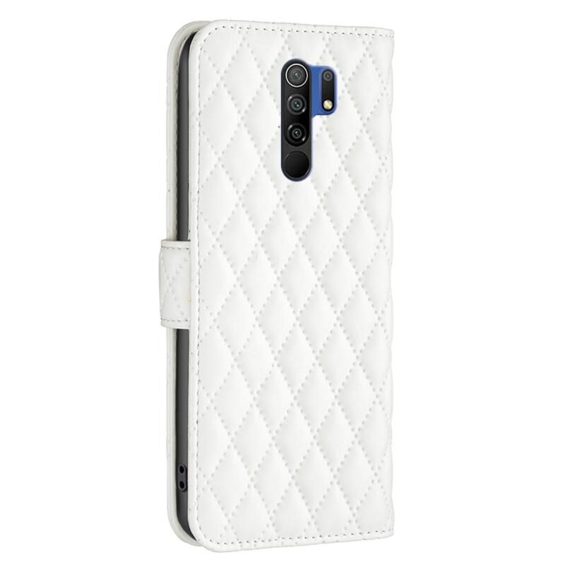Για Xiaomi Redmi 9 Diamond Lattice πορτοφόλι δέρμα Flip υπόθεση τηλεφώνου (λευκό)