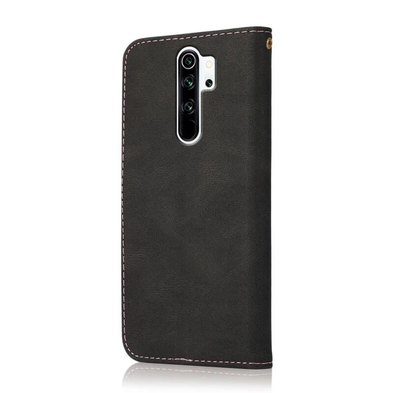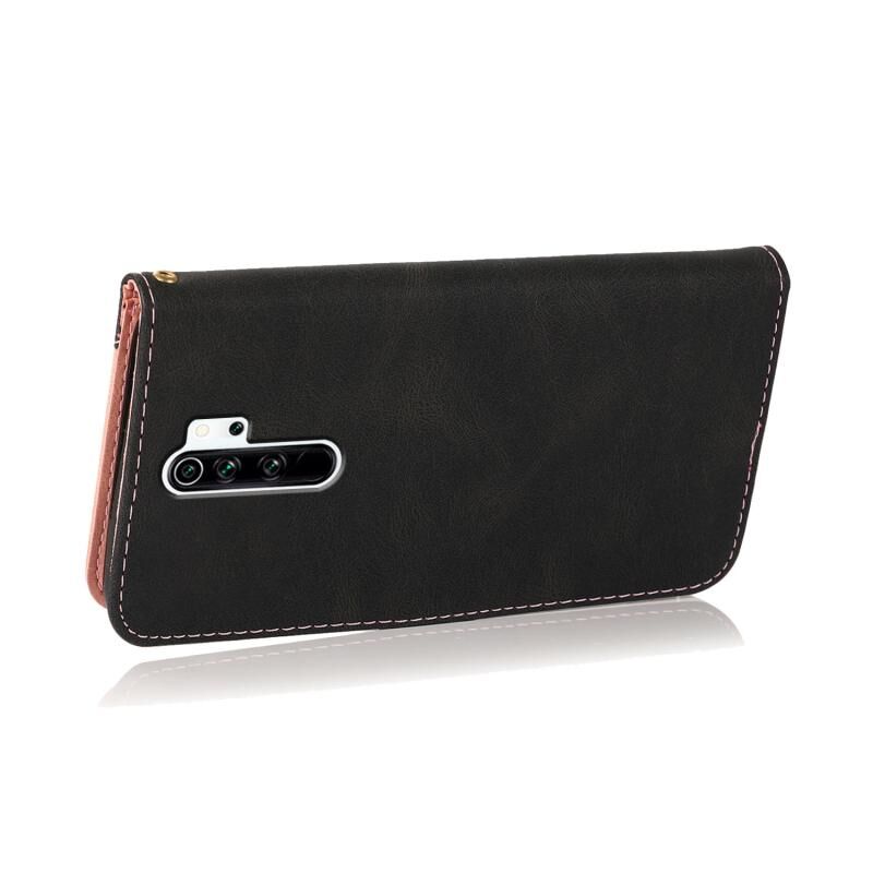 Για Xiaomi Redmi 9 Διπλό χρώμα ραφή δερμάτινη θήκη τηλεφώνου (μαύρο ροζ χρυσό)