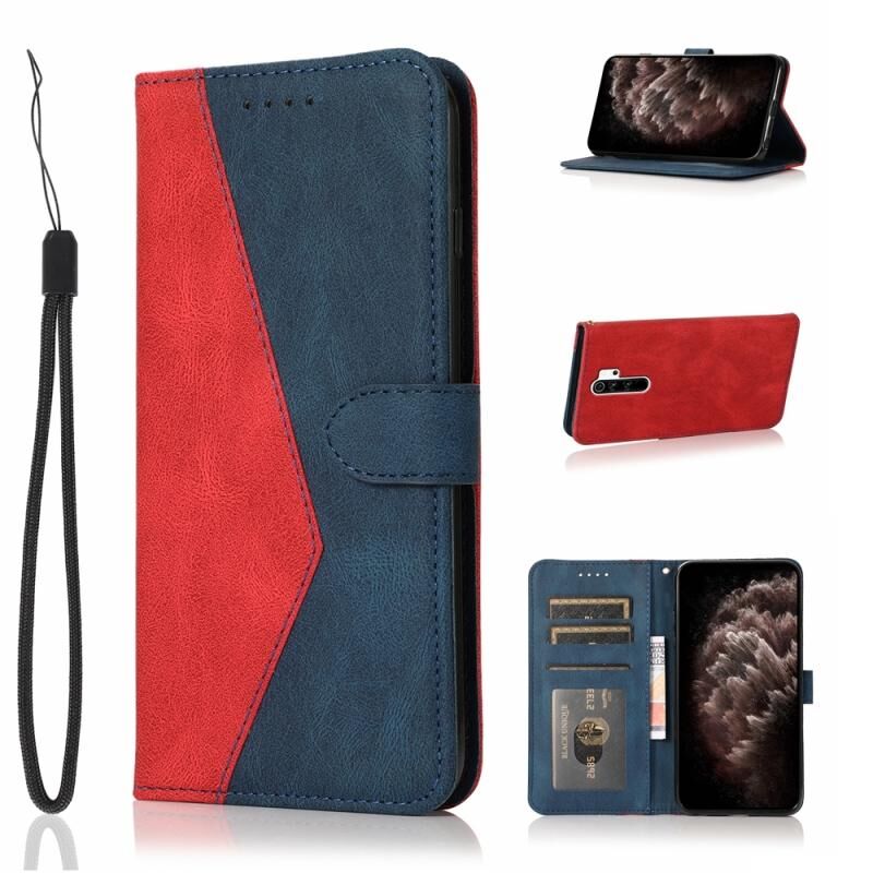 Για Xiaomi Redmi 9 Διπλό χρώμα ραφή δερμάτινη θήκη τηλεφώνου (κόκκινο μπλε)