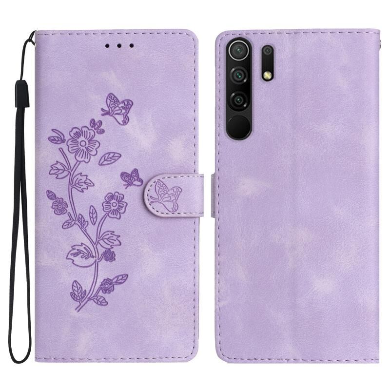 Για Xiaomi Redmi 9 λουλούδι πεταλούδα ανάγλυφο μοτίβο δερμάτινη θήκη τηλεφώνου (μωβ)
