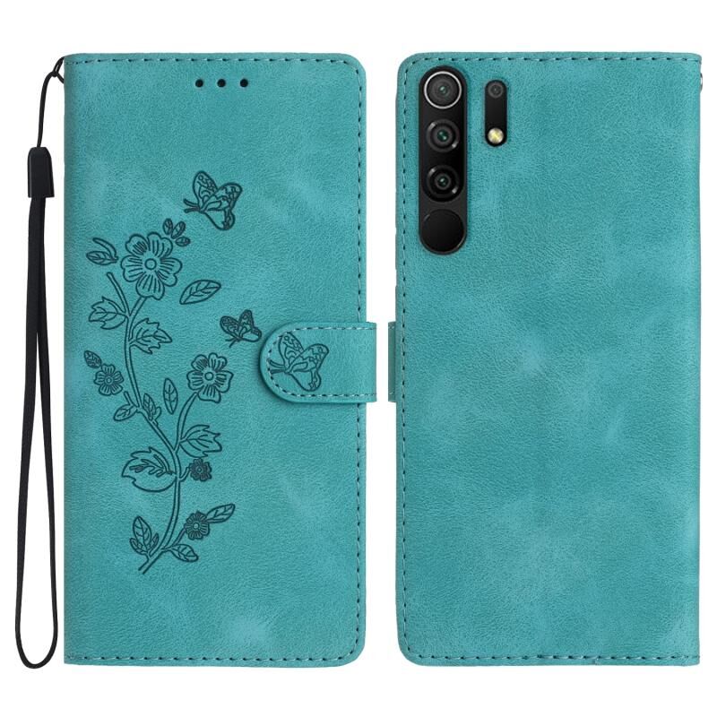 Για Xiaomi Redmi 9 λουλούδι πεταλούδα ανάγλυφο μοτίβο δερμάτινη θήκη τηλεφώνου (Sky Blue)