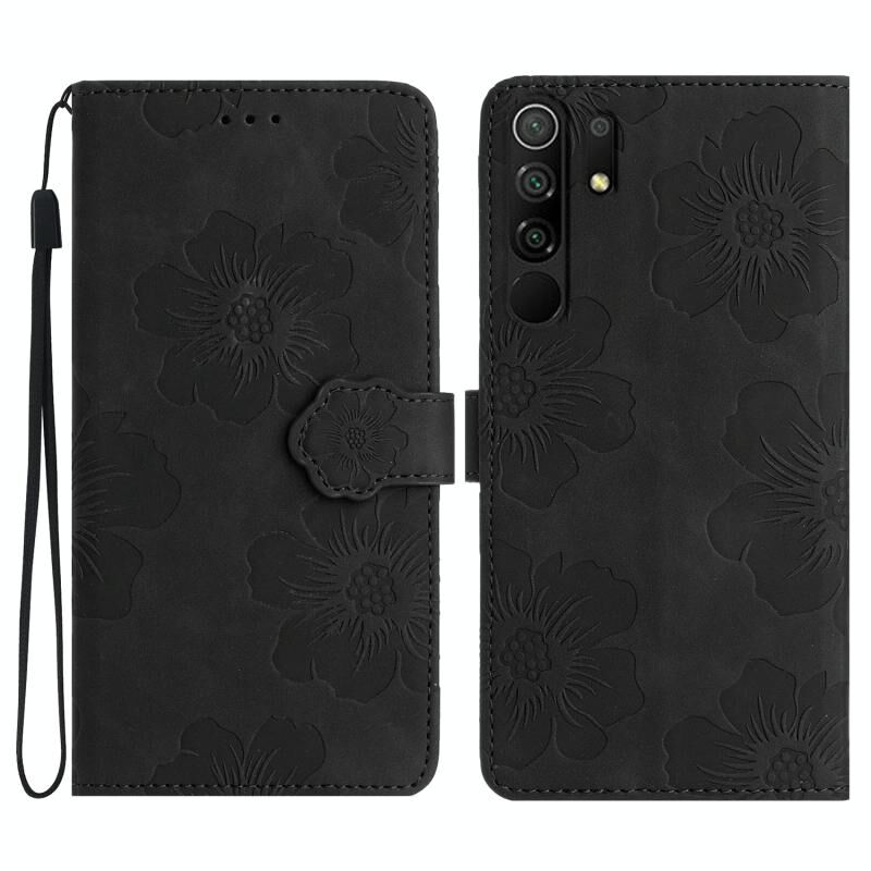 Για Xiaomi Redmi 9 λουλούδι ανάγλυφο μοτίβο δερμάτινη θήκη τηλεφώνου (μαύρο)