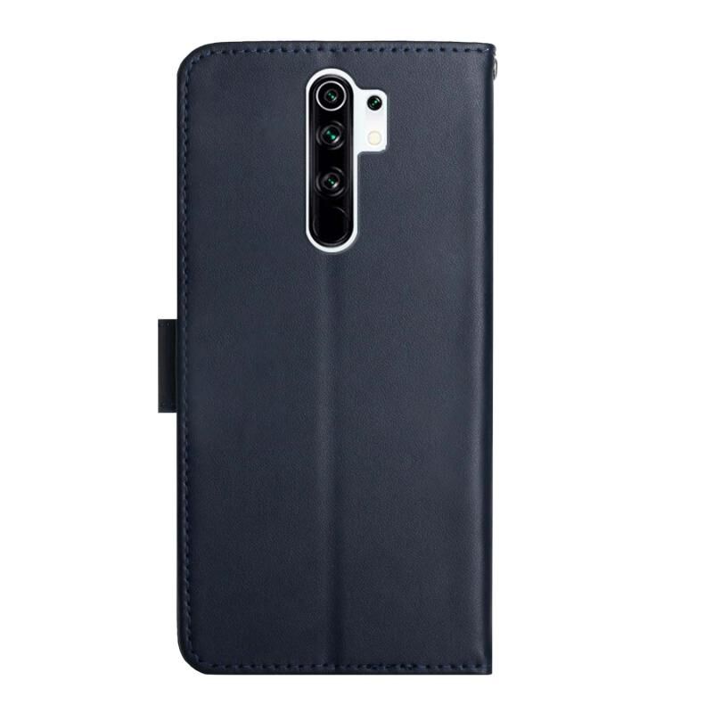 Θήκη τηλεφώνου οριζόντιας αναδίπλωσης από γνήσιο δέρμα για Xiaomi Redmi 9, ανθεκτική στα δακτυλικά αποτυπώματα (Μπλε)