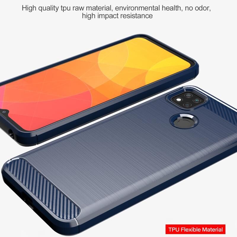 Για Xiaomi Redmi 9 Ινδία βουρτσισμένη υφή Carbon Fiber TPU τηλέφωνο υπόθεση (Κόκκινο)