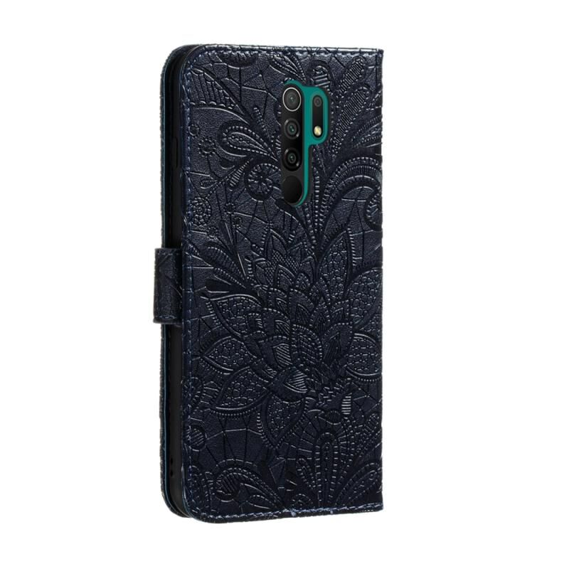 Θήκη για Xiaomi Redmi 9 με δαντελένιο λουλούδι, οριζόντια αναδιπλούμενη από δέρμα με βάση στήριξης & υποδοχές καρτών & πορτοφόλι & κορνίζα φωτογραφιών (Σκούρο μπλε)