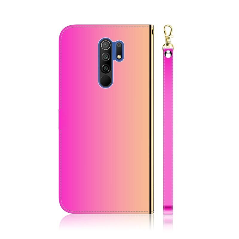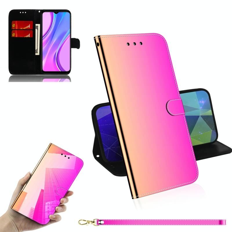 Για Xiaomi Redmi 9 Lmitated Mirror Surface Οριζόντια Flip δερμάτινη θήκη με θήκη & υποδοχές για κάρτες & πορτοφόλι & κορδόνι (Κόκκινο)