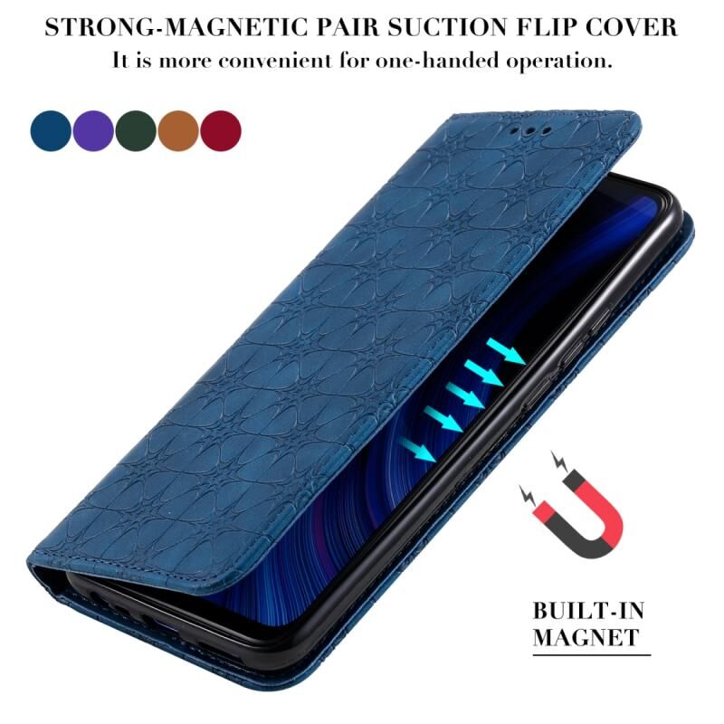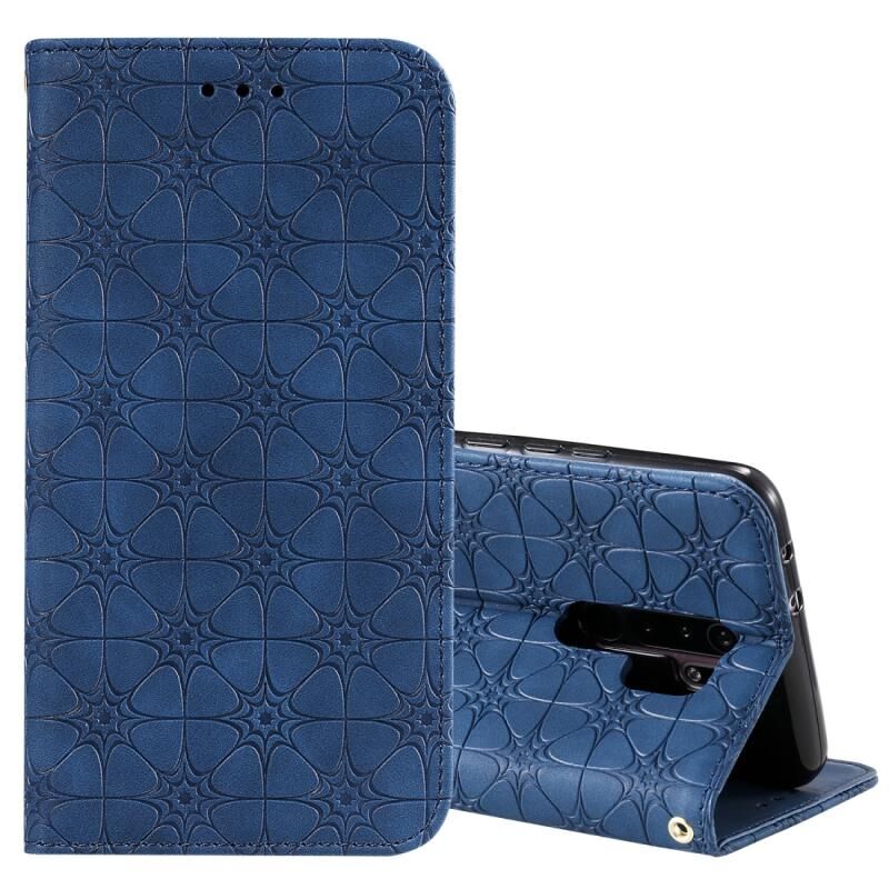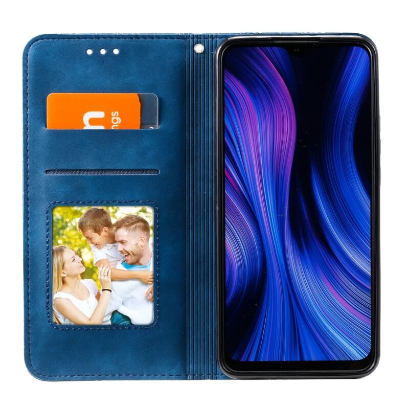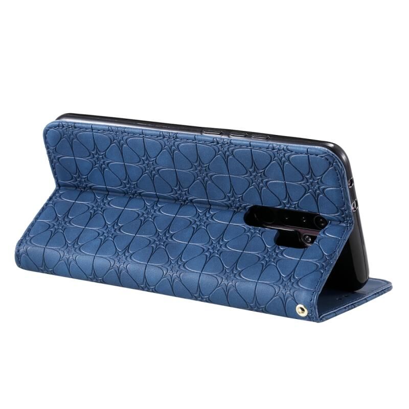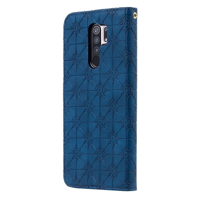 Θήκη δέρματος Xiaomi Redmi 9 με μαγνητικό κλείσιμο, σχέδιο ανάγλυφων λουλουδιών, οριζόντια, με βάση στήριξης & θήκες για κάρτες (Μπλε)