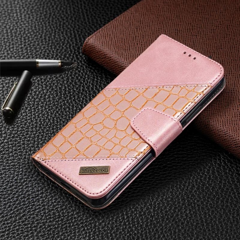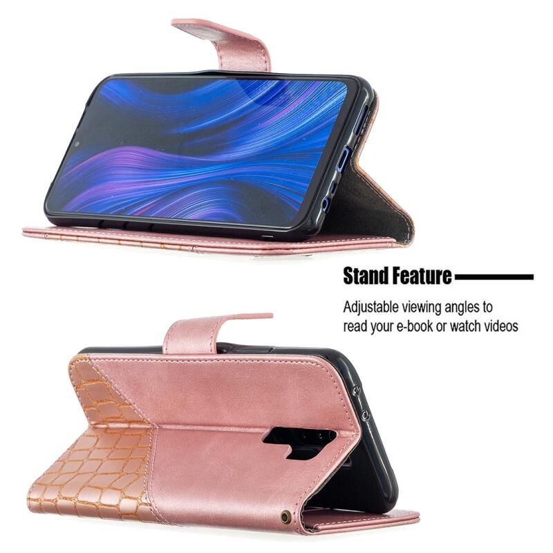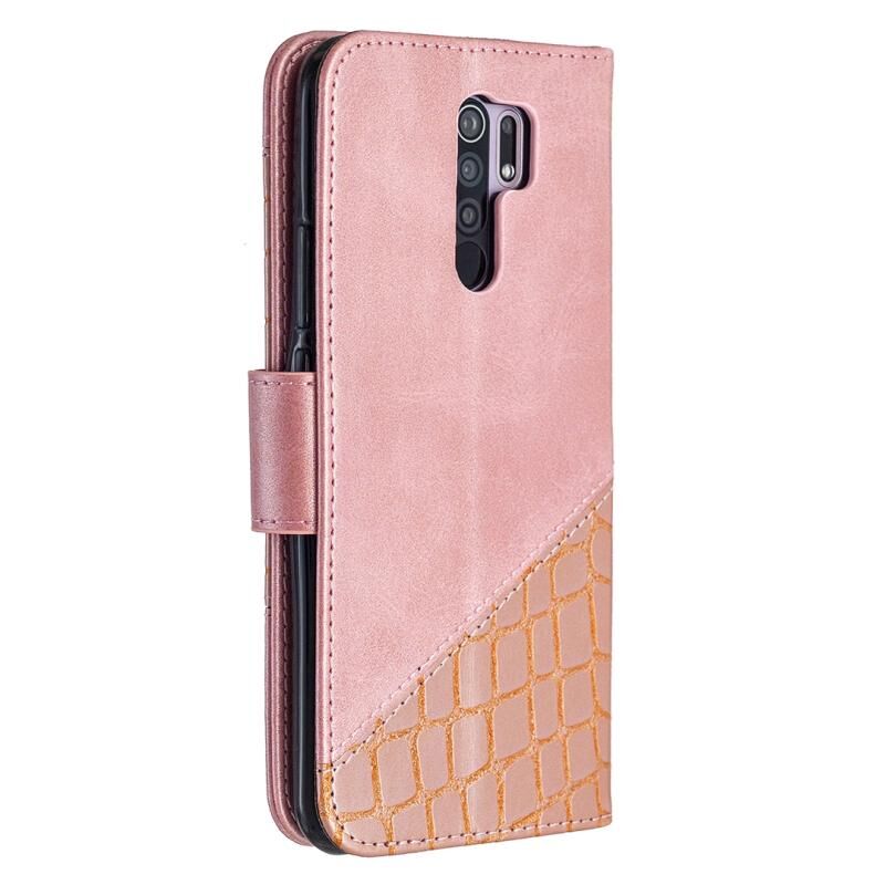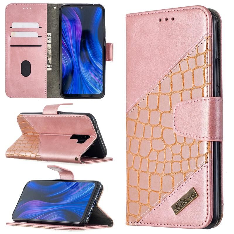 Θήκη για Xiaomi Redmi 9, με υφή κροκόδειλου, οριζόντια αναδίπλωση, από δερματίνη PU, με πορτοφόλι, βάση στήριξης & θήκες για κάρτες (Ροζ χρυσός)