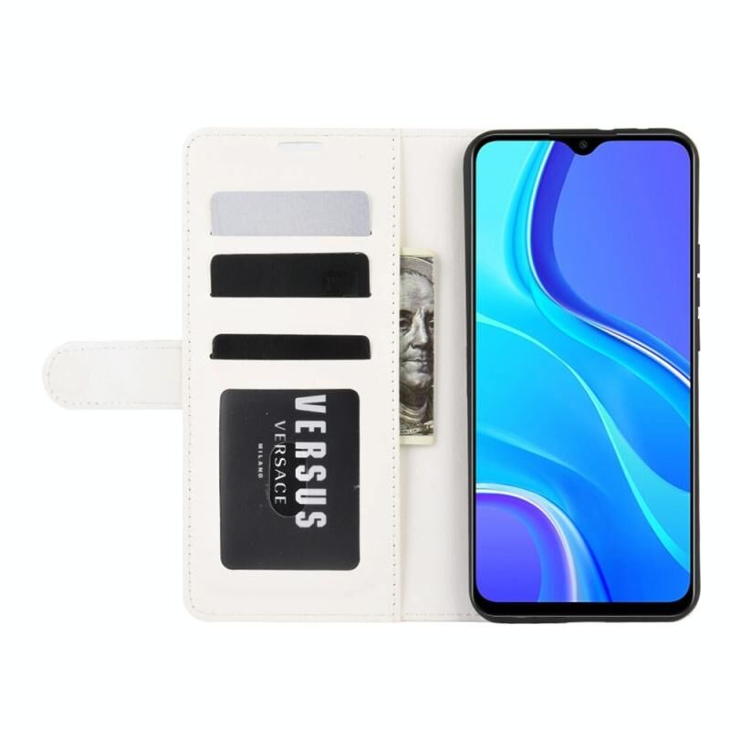 Για Xiaomi Redmi 9 R64 υφή ενιαία οριζόντια Flip προστατευτική θήκη με υποδοχή & υποδοχές καρτών & πορτοφόλι & πλαίσιο φωτογραφιών (Λευκό)