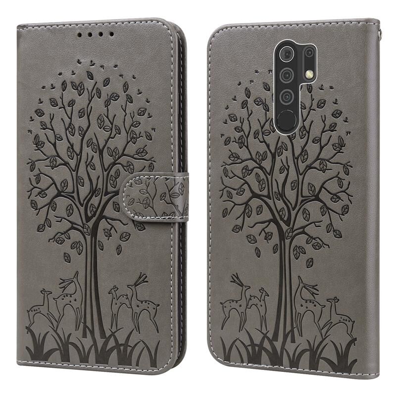 Θήκη τηλεφώνου από δέρμα με σχέδιο δέντρου & ελαφιού, τύπου flip, για Xiaomi Redmi 9 / Redmi 10X (Μωβ)
