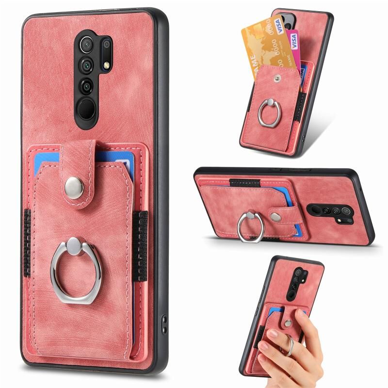 Για Xiaomi Redmi 9 Ρετρό δέρμα αίσθηση δαχτυλίδι κάρτα πορτοφόλι υπόθεση τηλεφώνου (ρόζ)