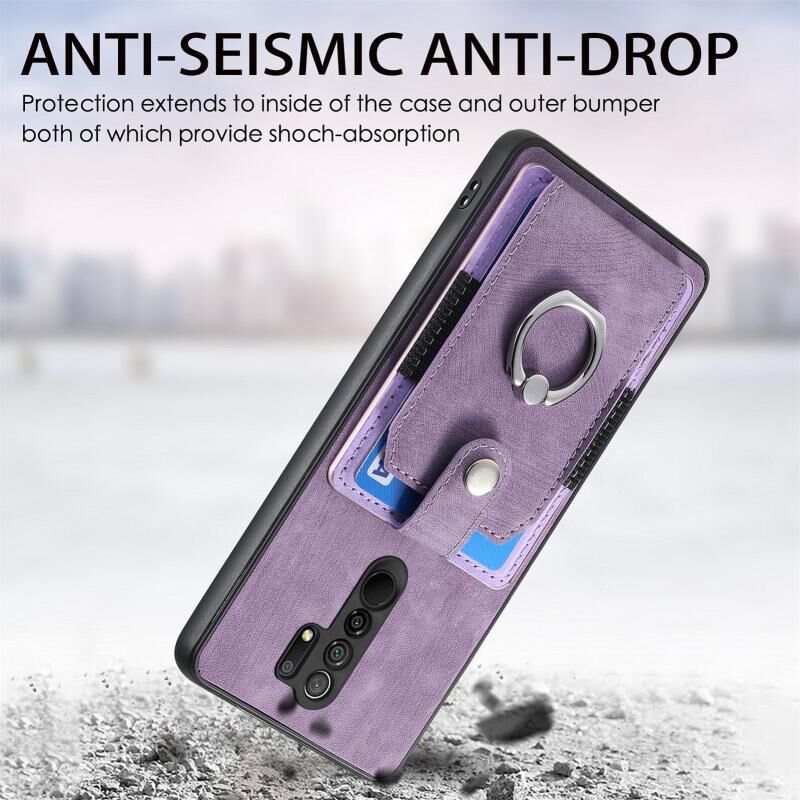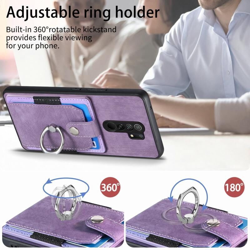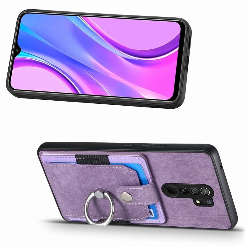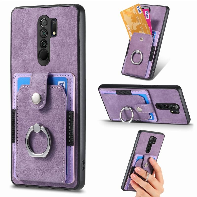Για Xiaomi Redmi 9 Ρετρό δέρμα αίσθηση δαχτυλίδι κάρτα πορτοφόλι θήκη τηλεφώνου (Μωβ)