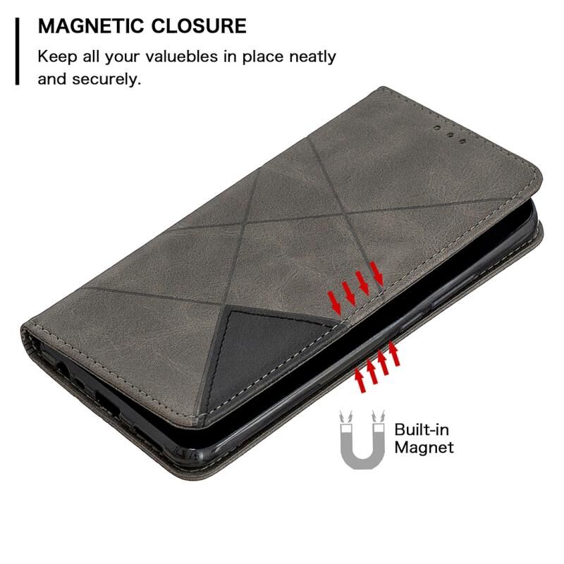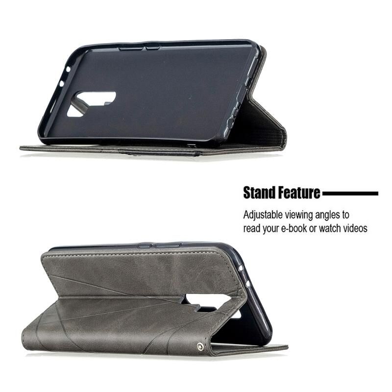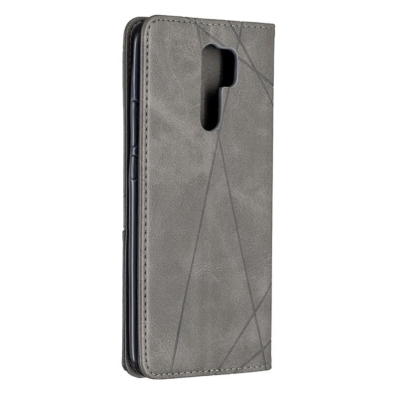 Για Xiaomi Redmi 9 Rhombus Υφή Οριζόντια Flip μαγνητική δερμάτινη θήκη με θήκη & υποδοχές για κάρτες & πορτοφόλι (γκρι)
