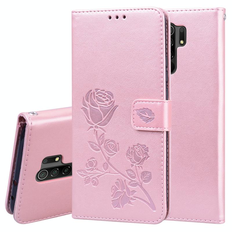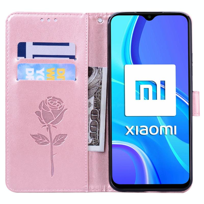 Θήκη για Xiaomi Redmi 9 Rose Embossed, Οριζόντια, Δερμάτινη PU με Θήκη & Θήκες Καρτών & Πορτοφόλι (Ροζ χρυσός)