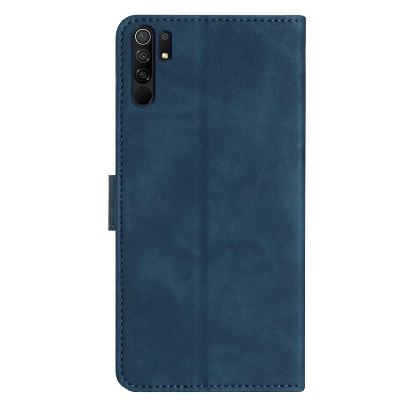Για Xiaomi Redmi 9 Επτά πεταλούδες ανάγλυφη δερμάτινη θήκη τηλεφώνου (Μπλε)