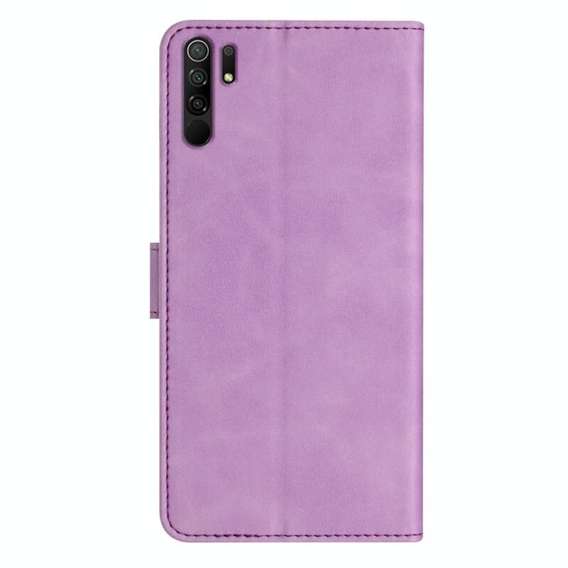 Για Xiaomi Redmi 9 Επτά πεταλούδες ανάγλυφη δερμάτινη θήκη τηλεφώνου (Μωβ)