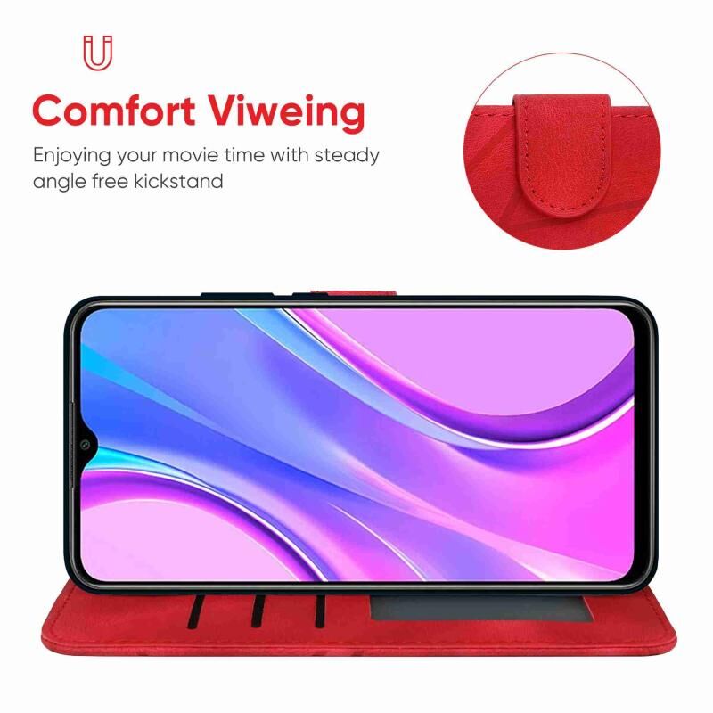 Για Xiaomi Redmi 9 Skin Feel γεωμετρικές γραμμές δερμάτινη θήκη τηλεφώνου (κόκκινο)