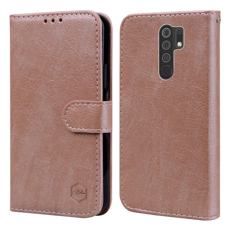 For Xiaomi Redmi 9 Skin Feeling Oil Leather Texture PU + TPU Phone Case(Champagne)