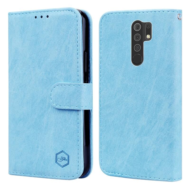 Θήκη κινητού Xiaomi Redmi 9 με υφή δέρματος λάδι και PU + TPU (Σκούρο Μπλε)
