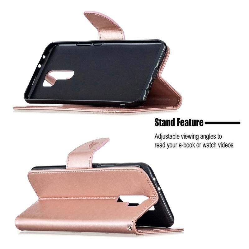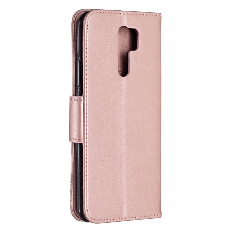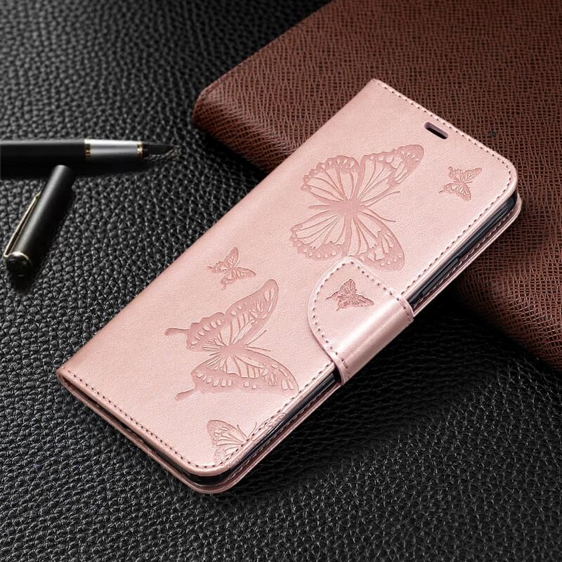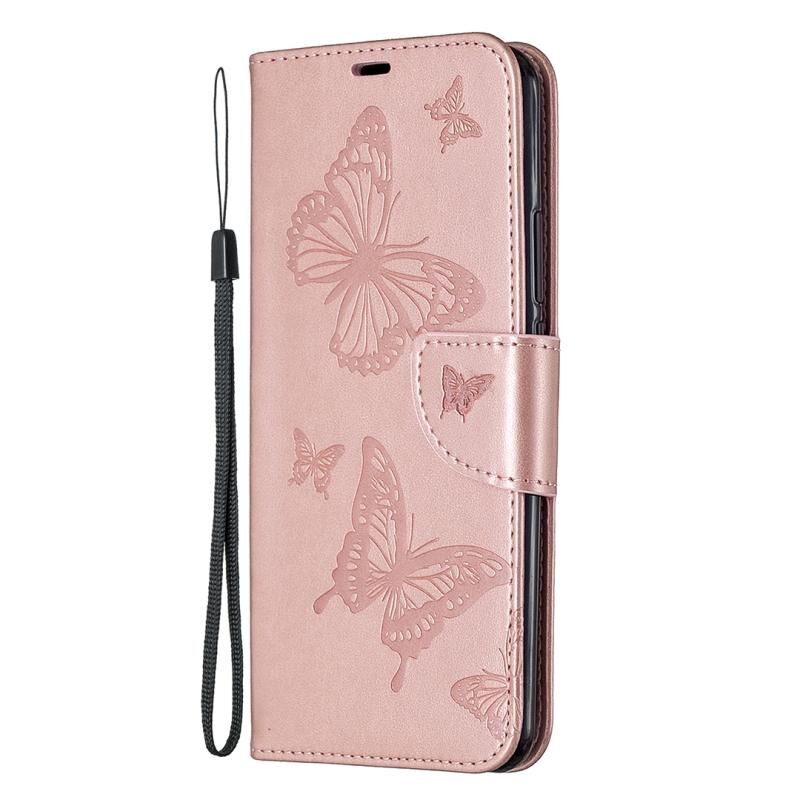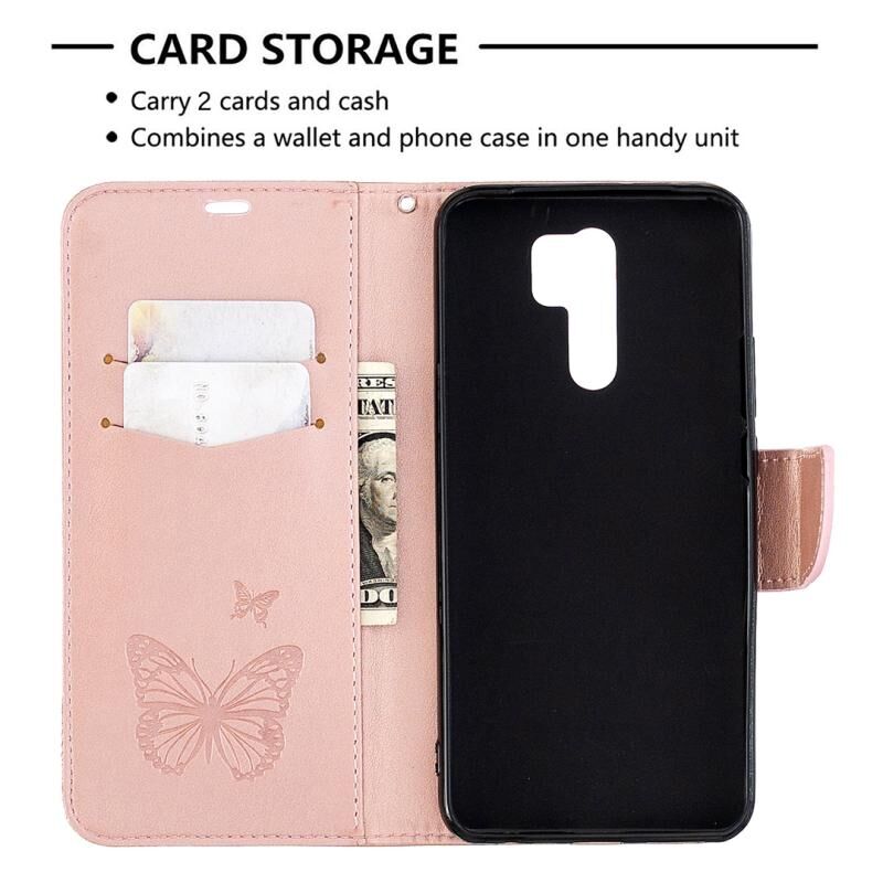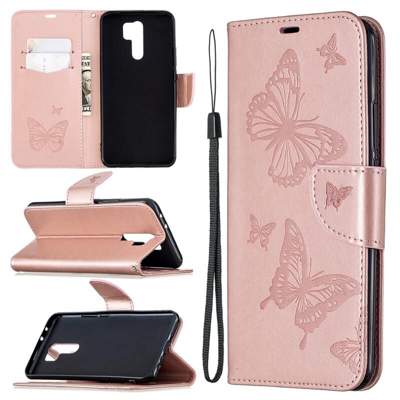 Για Xiaomi Redmi 9 Δύο πεταλούδες ανάγλυφο μοτίβο οριζόντια Flip δερμάτινη θήκη με κάτοχο & υποδοχή για κάρτες & πορτοφόλι & κορδόνι (Rose Gold)