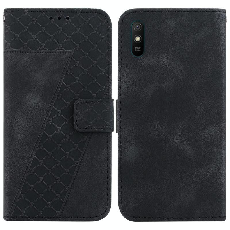 Για Xiaomi Redmi 9A 7-shaped ανάγλυφη δερμάτινη θήκη τηλεφώνου (μαύρο)