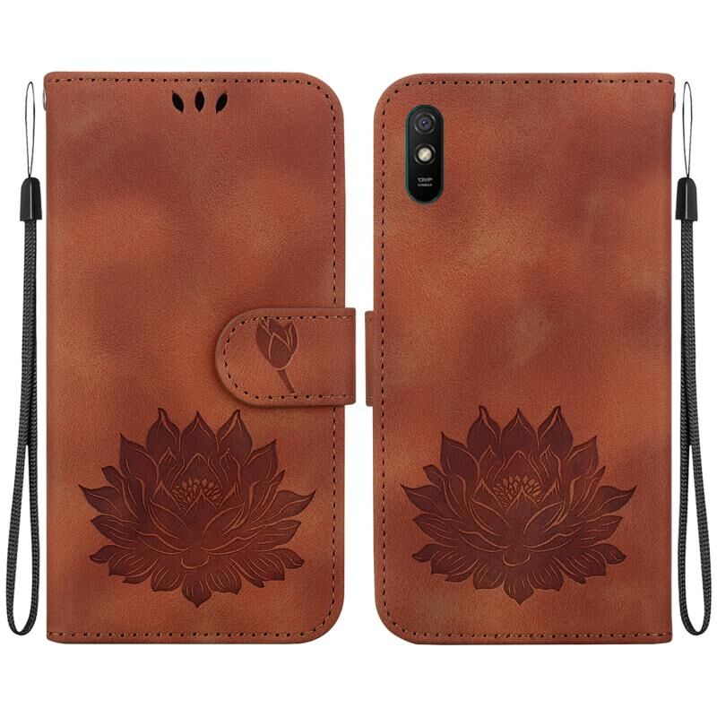 Για Xiaomi Redmi 9A / 9i Sport / 9A Sport Lotus ανάγλυφη δερμάτινη θήκη τηλεφώνου (Καφέ)