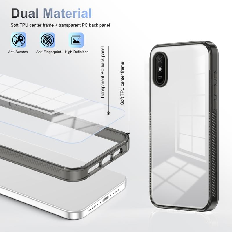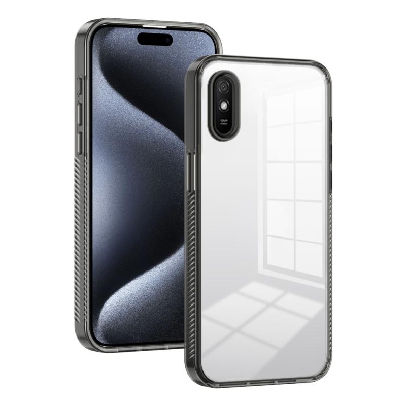 For Xiaomi Redmi 9A Anti-slip Clear Acrylic Hybrid TPU Phone Case(Black)