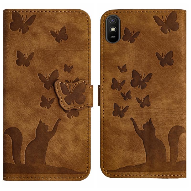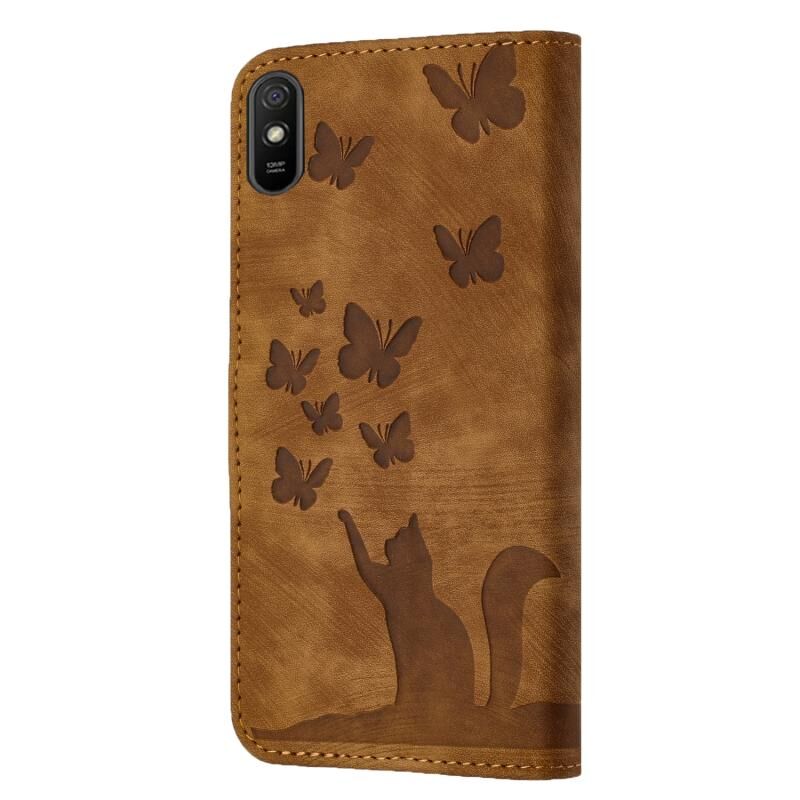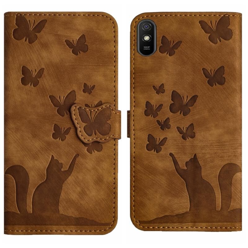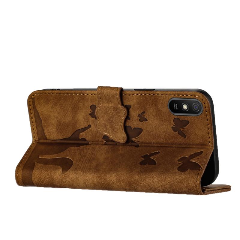 Θήκη βιβλίου δερμάτινη με σχέδιο πεταλούδας για Xiaomi Redmi 9A (Καφέ)