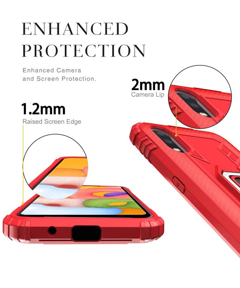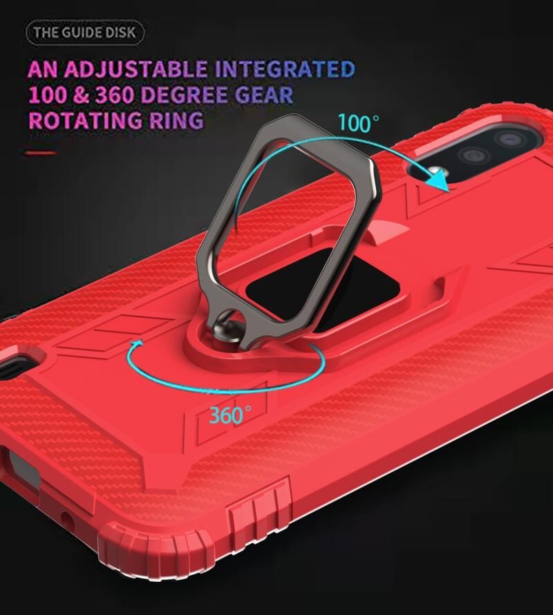 Για Xiaomi Redmi 9A Carbon Fiber Προστατευτική θήκη με 360 μοίρες περιστρεφόμενο δαχτυλίδι κάτοχος (κόκκινο)