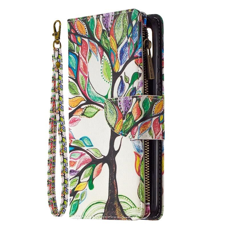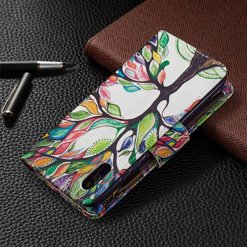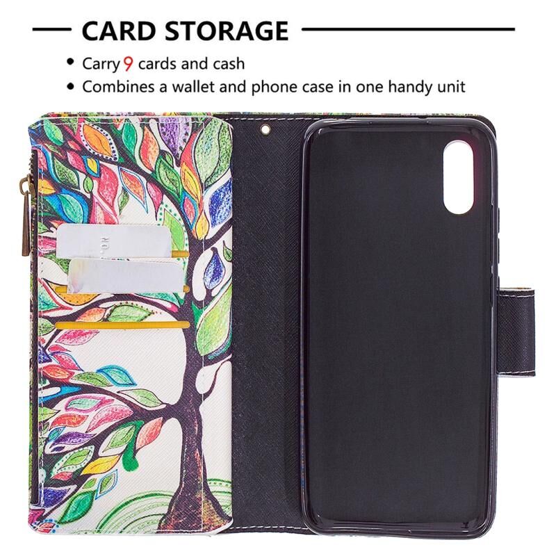Θήκη δέρματος οριζόντιας αναδίπλωσης με φερμουάρ και σχέδια για Xiaomi Redmi 9A με βάση στήριξης & υποδοχές καρτών & πορτοφόλι (Δέντρο)