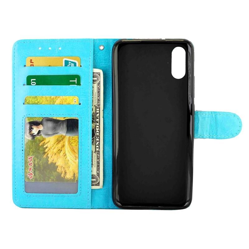 Για Xiaomi Redmi 9A Crazy Horse Υφή δέρμα οριζόντια Flip προστατευτική θήκη με υποδοχή & υποδοχές καρτών & πορτοφόλι & πλαίσιο φωτογραφιών (μωρό μπλε)
